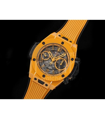 • [홍콩명품시계.HUBLOT] 휴블럿 빅뱅 유니코 42mm 오렌지 세라믹 베젤 스켈레톤 다이얼