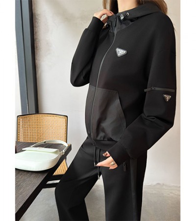 • [홍콩명품,PRADA] 프라다 25SS 삼각로고 여성 트레이닝 후드 집업 자켓 + 조거 팬츠 바지 상하의 세트 (블랙), BM22500, MC, 레플리카의류,미러급사이트