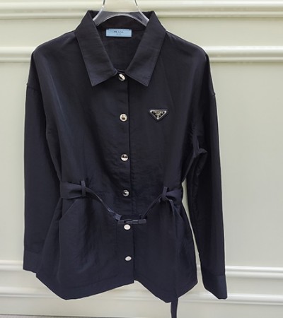 [홍콩명품,PRADA] 프라다 25SS 삼각로고 여성 벨티드 셔츠 (블랙), BM22522, MC, 레플리카의류,미러급사이트 > 여성몰