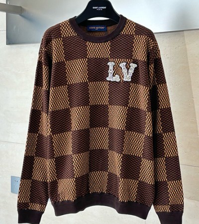 • [홍콩명품.LOUIS VUITTON] 루이비통 25SS 로고 다미에 니트 스웨터 (브라운), BM22567, KB, 레플리카의류,미러급사이트