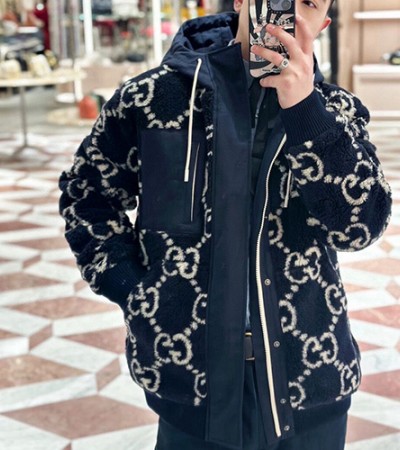 • [홍콩명품.Gucci] 구찌 25SS 로고 GG수프림 플리스 솜패딩 후드 집업 자켓 (네이비), BM22603, JL, 레플리카의류,미러급사이트