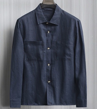 [홍콩명품.Loro Piana] 로로피아나 25SS 로고 린넨 남방 셔츠 (네이비), BM22646, KSM, 레플리카의류,미러급사이트 > 남자의류
