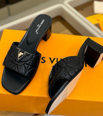 홍콩명품.LOUIS VUITTON] 루이비통 25SS 로고 여성 레더 가죽 5.5cm 굽 슬리퍼 (2컬러), SE5534, GHS, 명품스니커즈,운동화,구두,로퍼,하이탑,신발 요약정보 및 구매