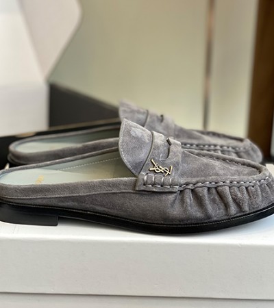 • [홍콩명품.YSL] 입생로랑 25SS 로고 여성 레더 가죽 뮬 슬리퍼 (그레이), SE5549, GHS, 명품스니커즈,운동화,구두,로퍼,하이탑,신발