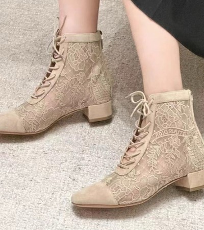 [홍콩명품,Christian Dior] 디올 25SS 로고 여성 레더 가죽 레이스 장식 구두 부츠 (베이지), SE5582, GHS, 명품스니커즈,운동화,구두,로퍼,하이탑,신발 > 여성몰