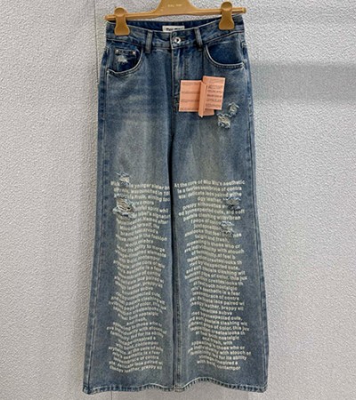 • [홍콩명품,MIU MIU] 미우미우 25SS 로고 여성 빈티지 오버핏 데님 팬츠 진 청바지, BM22710, TBG, 레플리카의류,미러급사이트