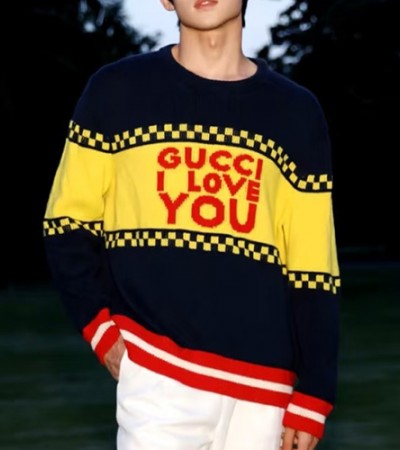 • [홍콩명품.Gucci] 구찌 25SS 로고 그래픽 캐시미어 니트 스웨터 (블랙-노랑), BM22726, JL, 레플리카의류,미러급사이트