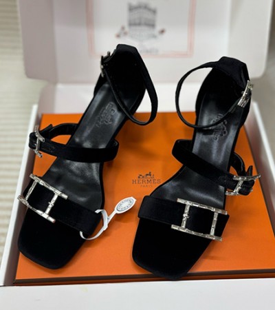 • [홍콩명품.Hermes] 에르메스 25SS 로고 여성 레더 가죽 힐 샌들 (블랙), SE5700, H3, 명품스니커즈,운동화,구두,로퍼,하이탑,신발