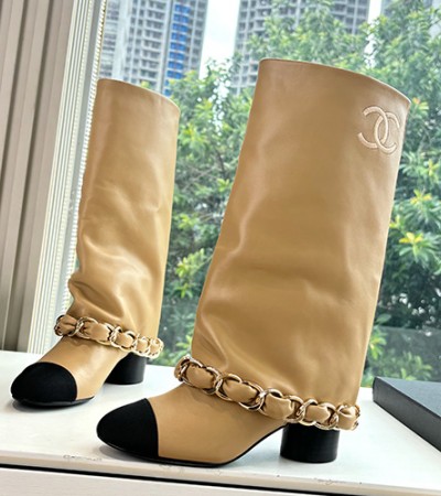 • [홍콩명품.CHANEL] 샤넬 25SS 로고 여성 레더 가죽 5.5cm 굽 구두 부츠 (베이지), SE5746, GHS, 명품스니커즈,운동화,구두,로퍼,하이탑,신발