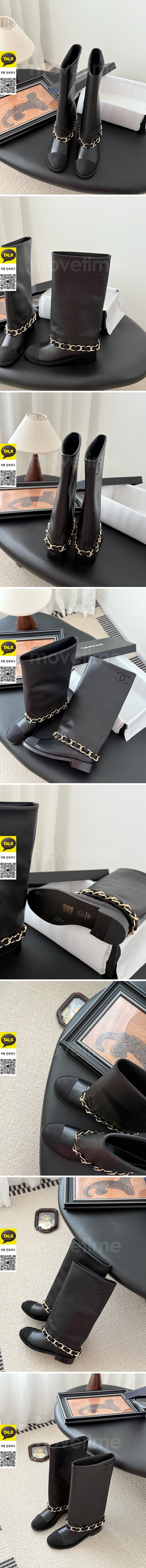 • [홍콩명품.CHANEL] 샤넬 25SS 로고 여성 레더 가죽 3cm 굽 구두 부츠 (블랙), SE5747, GHS, 명품스니커즈,운동화,구두,로퍼,하이탑,신발