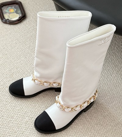 • [홍콩명품.CHANEL] 샤넬 25SS 로고 여성 레더 가죽 3cm 굽 구두 부츠 (화이트), SE5749, GHS, 명품스니커즈,운동화,구두,로퍼,하이탑,신발