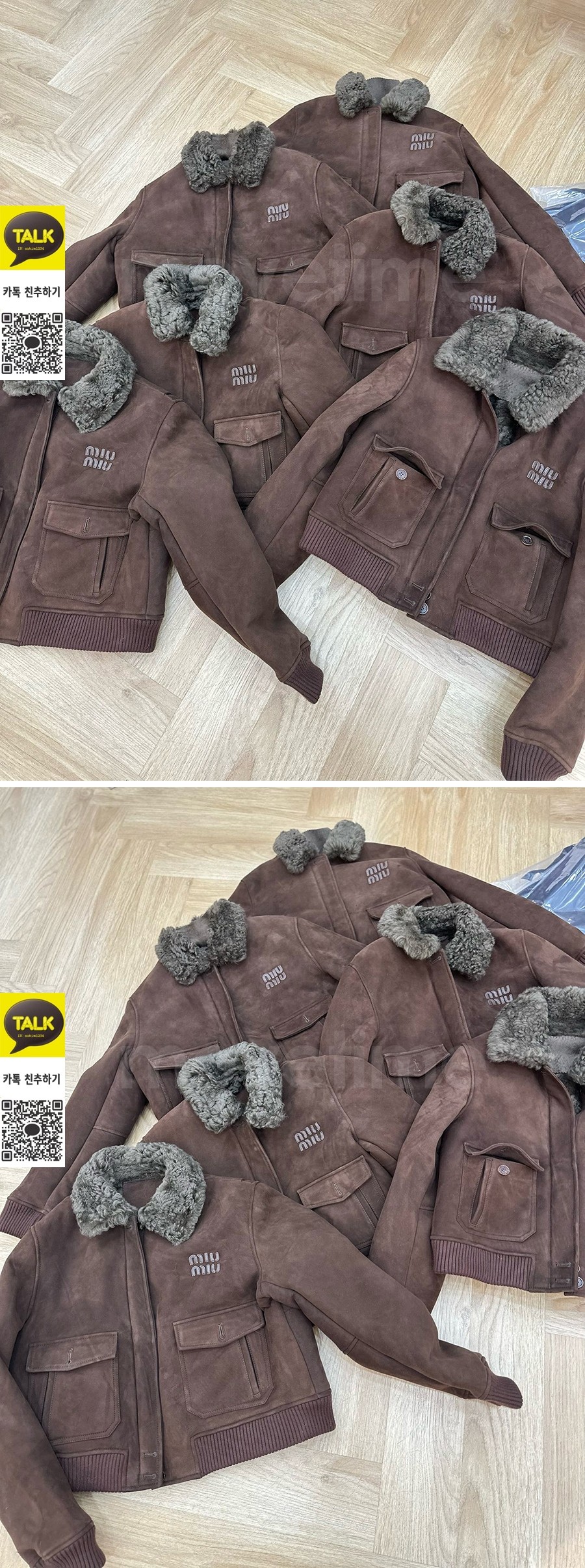 • [홍콩명품,MIU MIU] 미우미우 25SS 로고 레더 가죽 시어링 봄버 자켓 (브라운), BM22808, TOM, 레플리카의류,미러급사이트