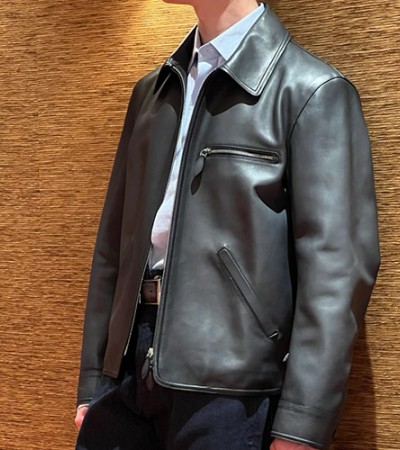 • [홍콩명품.BERLUTI] 벨루티 25SS 로고 레더 가죽 카라 자켓 (블랙), BM22814, TOM, 레플리카의류,미러급사이트
