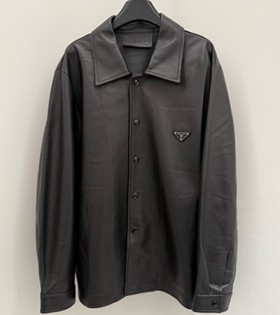 • [홍콩명품,PRADA] 프라다 25SS 삼각로고 레더 가죽 카라 자켓 (블랙), BM22817, TOM, 레플리카의류,미러급사이트