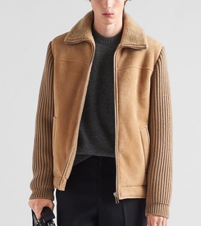[홍콩명품,PRADA] 프라다 25SS 로고 레더 가죽 레이어드 카라 봄버 자켓 (카라멜), BM22833, TOM, 레플리카의류,미러급사이트 > 남자의류