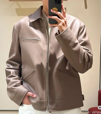 • [홍콩명품.Loro Piana] 로로피아나 25SS 로고 레더 가죽 카라 자켓 (브라운), BM22838, TOM, 레플리카의류,미러급사이트