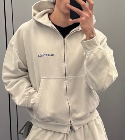 [홍콩명품.BALENCIAGA] 발렌시아가 25SS 로고 자수 빈티지 후드 집업 자켓 (아이보리), BM22922, KB, 레플리카의류,미러급사이트 요약정보 및 구매