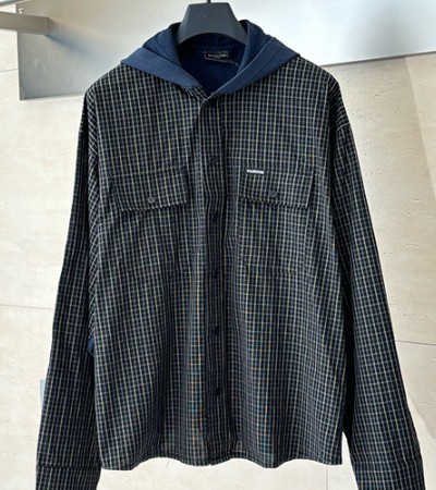 • [홍콩명품.BALENCIAGA] 발렌시아가 25SS 로고 체크패턴 후드 셔츠 자켓 (블랙), BM22944, KB, 레플리카의류,미러급사이트