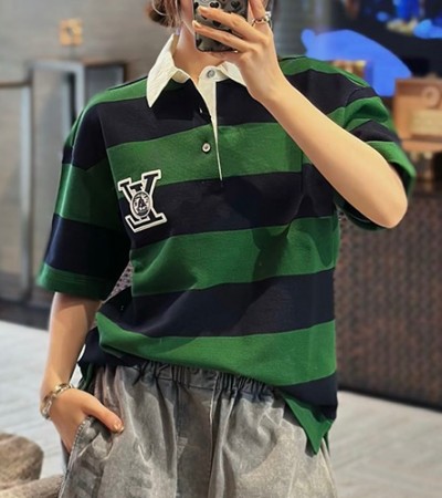 • [홍콩명품.LOUIS VUITTON] 루이비통 25SS 로고 스트라이프 카라 폴로 반팔 티셔츠 (그린-네이비), BM22951, KB, 레플리카의류,미러급사이트