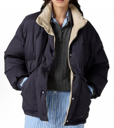 • [홍콩명품,MIU MIU] 미우미우 25SS 로고 리버서블 다운 패딩 자켓 (네이비-베이지), BM22959, KB, 레플리카의류,미러급사이트