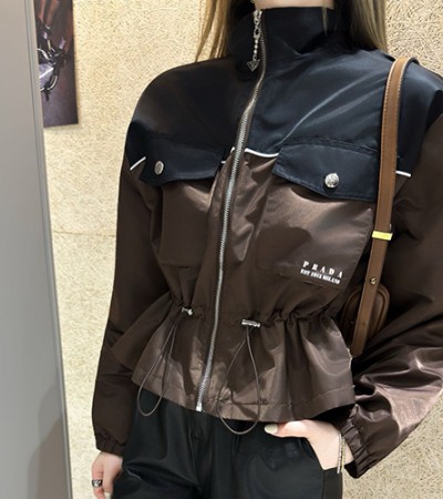 [홍콩명품,PRADA] 프라다 25SS 삼각로고 여성 나일론 집업 자켓 (브라운-블랙), BM23074, MC, 레플리카의류,미러급사이트 > 여성몰