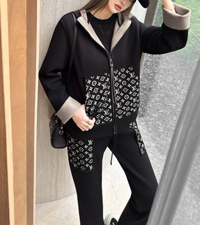 • [홍콩명품.LOUIS VUITTON] 루이비통 25SS 로고 여성 모노그램 후드 집업 자켓 + 조거 팬츠 바지 상하의 세트 (2컬러), BM23081, MC, 레플리카의류,미러급사이트