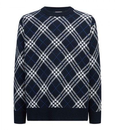 • [홍콩명품.Burberry] 버버리 25SS 로고 체크패턴 니트 스웨터 (네이비), BM23155, JL, 레플리카의류,미러급사이트