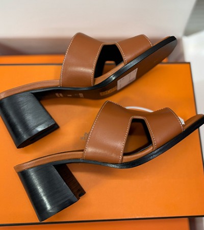 [홍콩명품.Hermes] 에르메스 25SS 로고 여성 레더 가죽 굽 슬리퍼 (브라운), SE5815, 명품스니커즈,운동화,구두,로퍼,하이탑,신발 > 여성몰