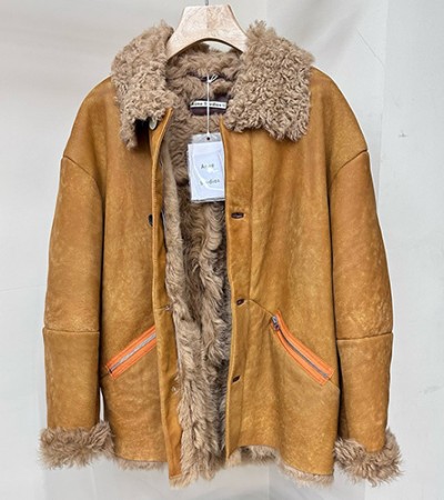 • [홍콩명품.ACNE STUDIO] 아크네스튜디오 25SS 로고 시어링 레더 가죽 코트 자켓 (카라멜), BM23235, TOM, 레플리카의류,미러급사이트