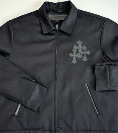 • [홍콩명품.Chrome Hearts] 크롬하츠 25SS 로고 크로스 레더 카라 자켓 (블랙), BM23421, KB, 레플리카의류,미러급사이트