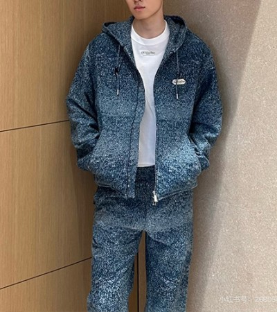 [홍콩명품,Christian Dior] 디올 25SS 로고 울 후드 집업 자켓 + 오버핏 팬츠 바지 상하의 세트 (블루), BM23425, KB, 레플리카의류,미러급사이트 > 남자의류