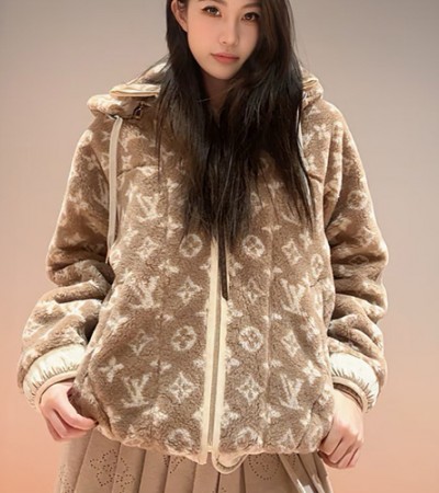 • [홍콩명품.LOUIS VUITTON] 루이비통 25SS 로고 여성 모노그램 플리스 후드 바람막이 자켓 1AIP50 (카라멜), BM23465, MC, 레플리카의류,미러급사이트
