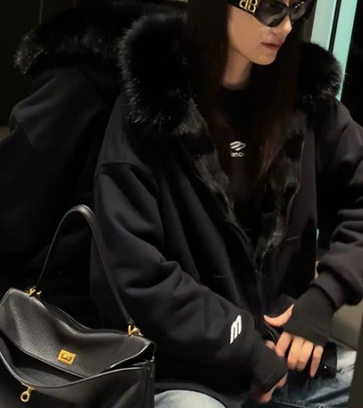 • [홍콩명품.BALENCIAGA] 발렌시아가 25SS 로고 스포티 여성 폭스퍼 후드 집업 자켓 (2컬러), BM23572, KB, 레플리카의류,미러급사이트