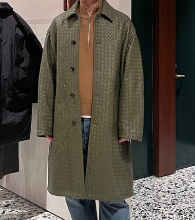 [홍콩명품.BOTTEGA VENETA] 보테가베네타 25SS 로고 인트레치아토 레더 가죽 코트 자켓 (카키), BM23593, TOM, 레플리카의류,미러급사이트 > 남자의류
