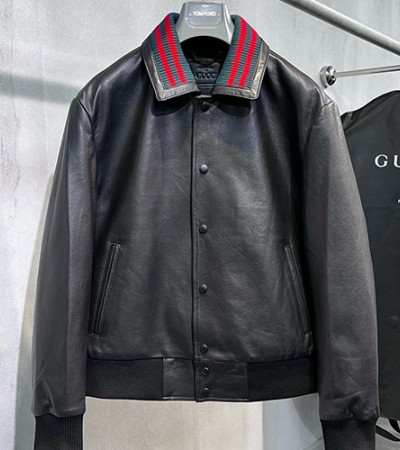 • [홍콩명품.Gucci] 구찌 25SS 로고 레더 가죽 카라 봄버 자켓 (블랙), BM23740, KSM, 레플리카의류,미러급사이트