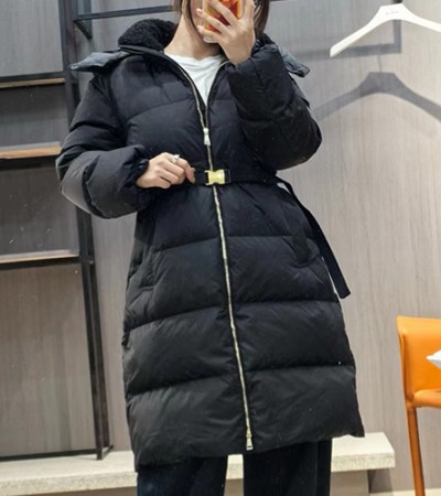 • [홍콩명품.MONCLER] 몽클레어 25SS 로고 여성 벨티드 구스다운 패딩 후드 코트 자켓 (블랙), BM23753, KSM, 레플리카의류,미러급사이트
