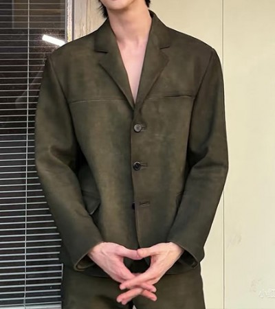 [홍콩명품,PRADA] 프라다 25SS 로고 레더 가죽 장장 수트 자켓 (카키), BM23822, PG, 레플리카의류,미러급사이트 > 남자의류