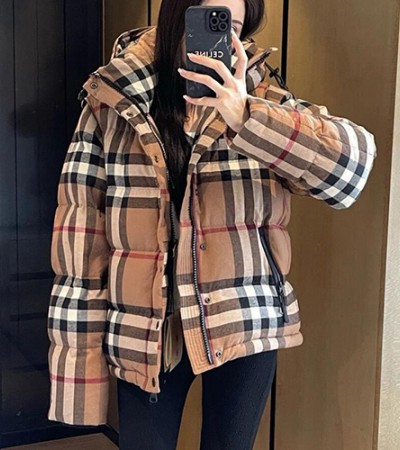 [홍콩명품.Burberry] 버버리 25SS 로고 여성 체크패턴 소매 탈부착 후드 다운 패딩 자켓 (카라멜), BM23899, MC, 레플리카의류,미러급사이트 > 여성몰