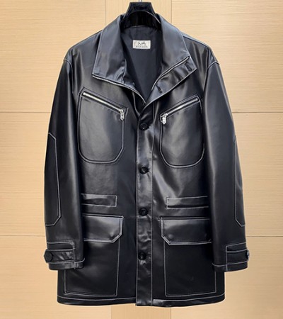 [가격문의][홍콩명품.Hermes] 에르메스 25SS 로고 레더 가죽 카라 코트 자켓 (블랙), BM23937, 레플리카의류,미러급사이트 > 남자의류