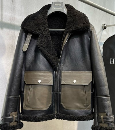 • [홍콩명품.Hermes] 에르메스 25SS 로고 시어링 레더 가죽 자켓 (블랙), BM23974, KSM, 레플리카의류,미러급사이트