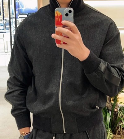 • [홍콩명품.LOEWE] 로에베 25SS 로고 터틀넥 캐시미어 봄버 자켓 (다크그레이), BM24007, PG, 레플리카의류,미러급사이트