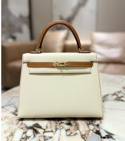 • [가격문의][홍콩명품.Hermes] 에르메스 25SS 로고 KELLY 25 토트백 핸드백 (아이보리-브라운-금장), BGM5373, BDA, 홍콩명품가방,명품쇼핑몰,크로스백,핸드백,구매대행