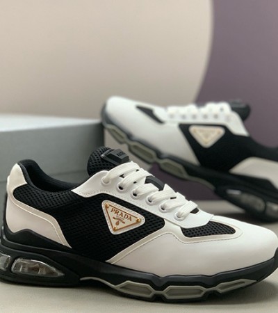 • [홍콩명품,PRADA] 프라다 25SS 삼각로고 레더 가죽 스니커즈 운동화 (화이트-블랙), SE5902, PMD, 명품스니커즈,운동화,구두,로퍼,하이탑,신발