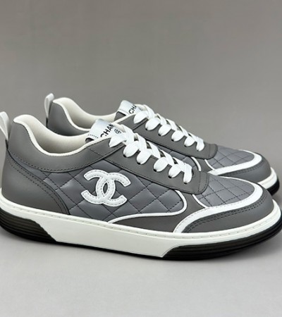 • [홍콩명품.CHANEL] 샤넬 25SS 로고 레더 가죽 스니커즈 운동화 (그레이), SE5957, S3, 명품스니커즈,운동화,구두,로퍼,하이탑,신발