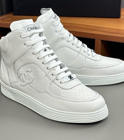 • [홍콩명품.CHANEL] 샤넬 25SS 로고 레더 가죽 하이탑 스니커즈 운동화 (화이트), SE5962, S3, 명품스니커즈,운동화,구두,로퍼,하이탑,신발