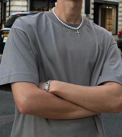 • [홍콩명품.LOUIS VUITTON] 루이비통 25SS 로고 코튼 반팔 티셔츠 (그레이), BM24114, KB, 레플리카의류,미러급사이트