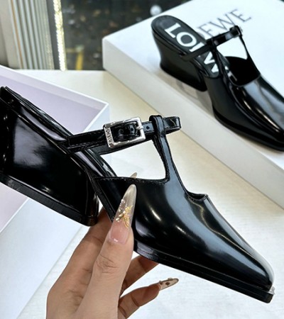 • [홍콩명품.LOEWE] 로에베 25SS 로고 여성 레더 가죽 4.5cm 굽 샌들 슬리퍼 (2컬러), SE5974, GHS, 명품스니커즈,운동화,구두,로퍼,하이탑,신발