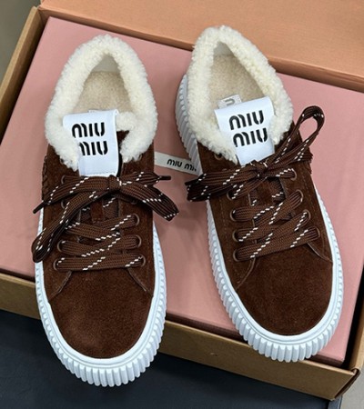 • [홍콩명품,MIU MIU] 미우미우 25SS 로고 여성 시어링 레더 가죽 스니커즈 운동화 (2컬러), SE5982, GHS, 명품스니커즈,운동화,구두,로퍼,하이탑,신발