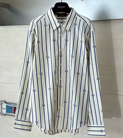 • [홍콩명품.Gucci] 구찌 25SS 로고 스트라이프 남방 셔츠 (아이보리), BM24270, KB, 레플리카의류,미러급사이트