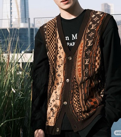 • [홍콩명품.LOUIS VUITTON] 루이비통 25SS 로고 패턴 니트 가디건 조끼 (2컬러), BM24274, KB, 레플리카의류,미러급사이트